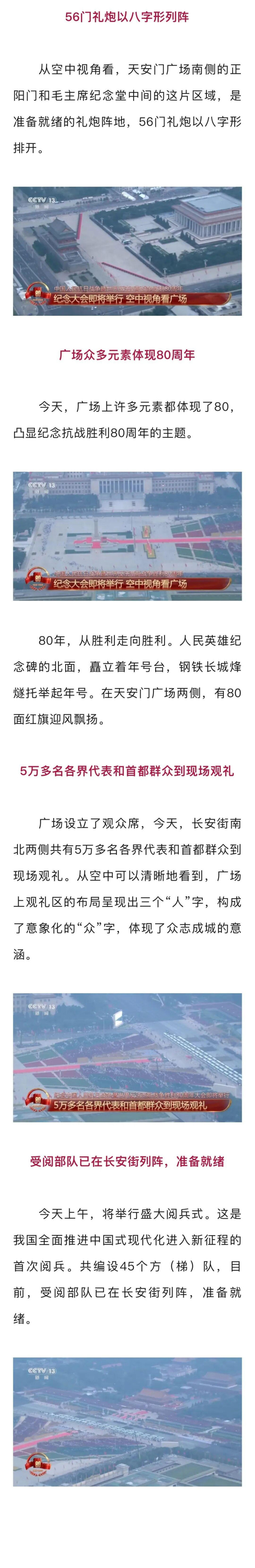今天早晨,总台记者乘坐直升机,沿北京中轴线,空中拍摄纪念大会现场。